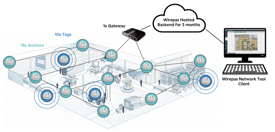 The Smart Tracking Wirepas Evaluation kit consists of a pre-configured ready to be installed setup including both the hardware components and the software to evaluate Wirepas Positioning technology.