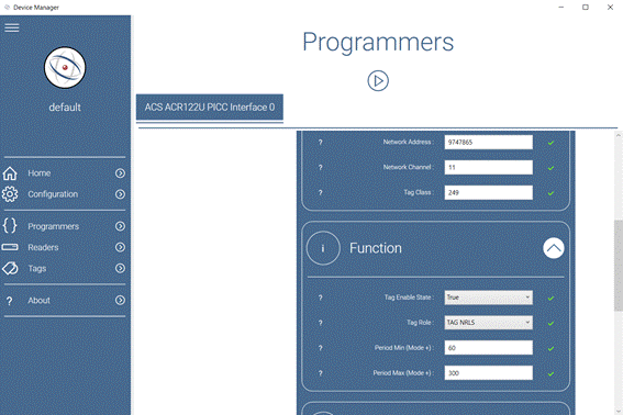 - Use the NFC programmer to switch-on the Tags “Tag Enable State → True” as shown in the picture below :