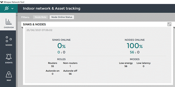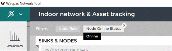 These filters are applied by clicking on the percentages of “sink Online” or “Nodes Online” to show statistics for only one of the types.