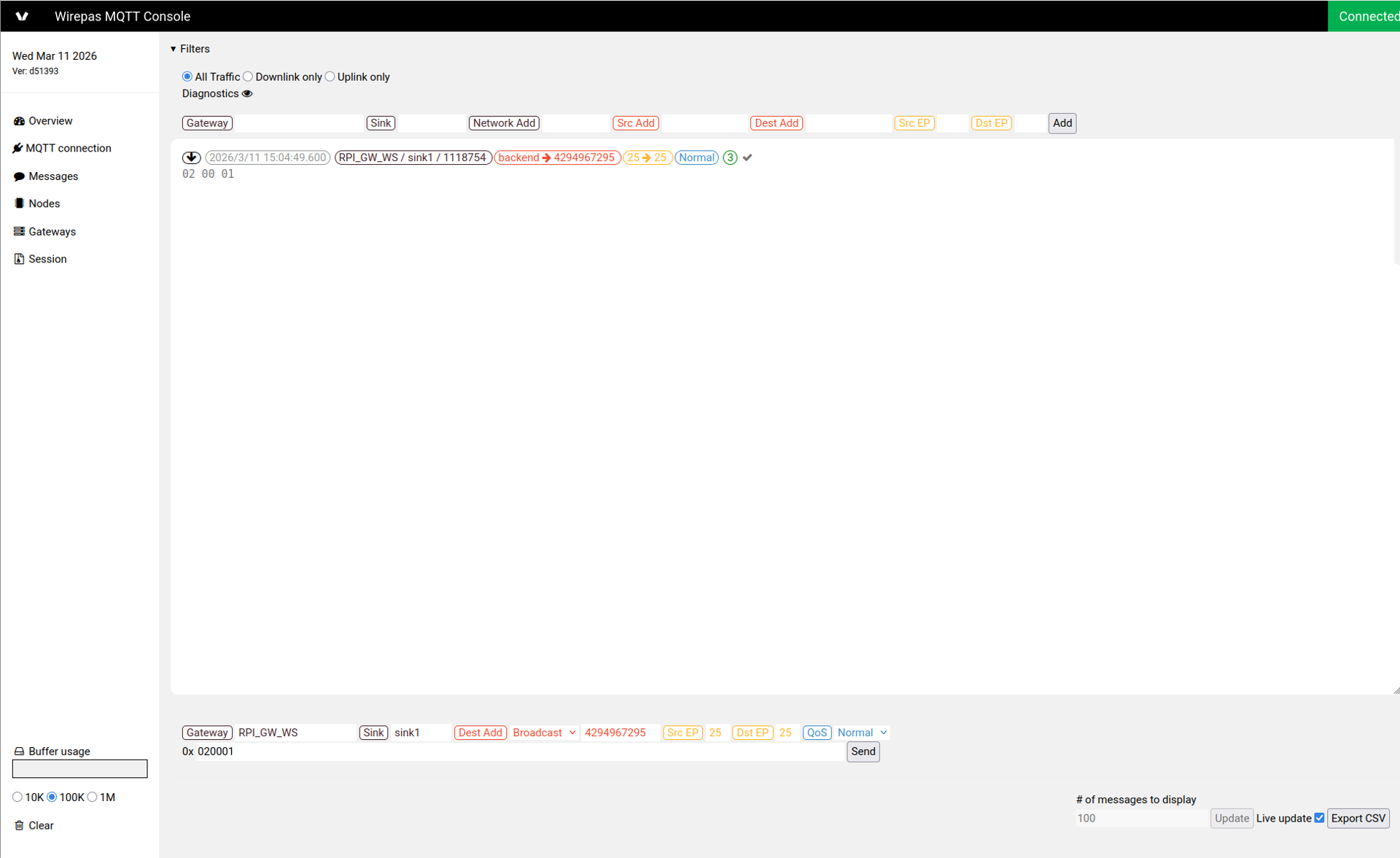 Then you will be able to communicate with the network through Wirepas MQTT Library Python script provided.